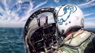 兩架飛機的駕駛艙視頻從航母西奧多羅斯福號航空母艦下水 (CVN-71). 第一個片段 – EA-18G 咆哮者, 分配到電子攻擊中隊 (VAQ-139), 拍攝於1月1日, 2018. 第二個剪輯 – F/A-18F 超級大黃蜂, 分配給攻擊戰鬥機攻擊中隊 (VFA-22), 拍攝於12月17日, 2017年. 西奧多羅斯福號航空母艦目前正在部署到中美. 操作的第五艦隊區域.