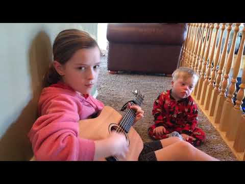我的女兒麗迪雅在看博,而我在淋浴. 出來這. 如果她沒有一把吉他,我不知道她是否知道如何照看他. 這是她去. 這證明,音樂療法作品. Bo 25 個月大,詞彙量為 12 個單詞. 每一個字,他已經學會一直通過音樂和唱歌.