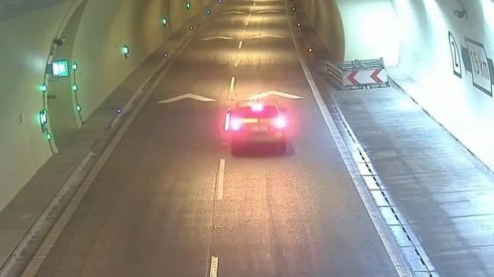 機動車輛駕駛員意識到他犯了一個錯誤, 而標題進入隧道SilonaPovažskýChlmec在斯洛伐克. 如果不著急的其他車輛, 在高速公路上反轉來隧道的出, 和向後移動,直到你到達出口損失. 完全不負責任的行為,可能導致嚴重事故.