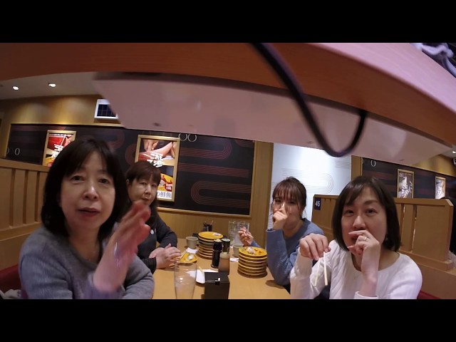 薩姆把相機在東京一盤迴轉壽司餐廳.