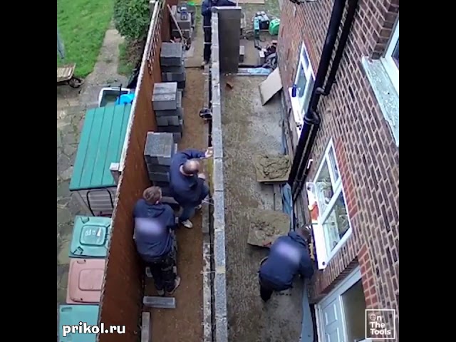 一名建築工人在波蘭, 他作即興的工具要均勻裝載在建築牆體磚.