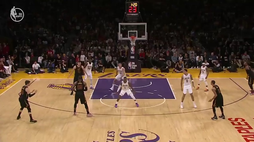 一個驚人的助攻勒布朗 - 詹姆斯在對陣湖人的比賽.