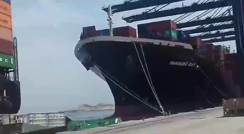 兩個大型商業船舶與集裝箱碰撞, 卡拉奇的巴基斯坦港口城市.