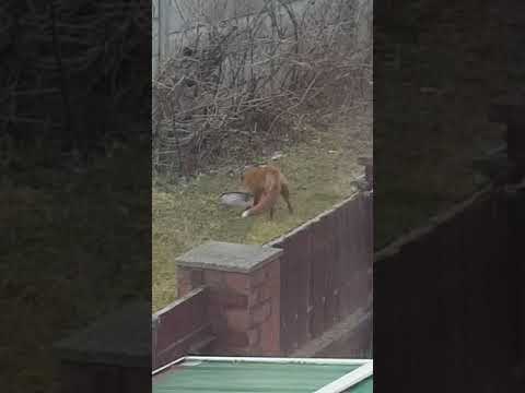北極狐充滿了他的嘴像一隻倉鼠,逃跑!