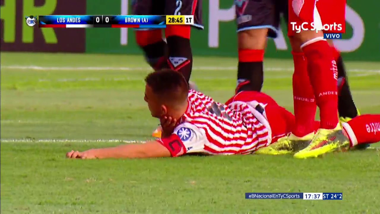 週六,2018年3月24日, 在阿根廷第二級聯賽“Los Andes”和“Brown”之間的比賽中, 在馬丁·米娜代韋諾取得對抗對手的頭一個非常危險的鏟球雜技.