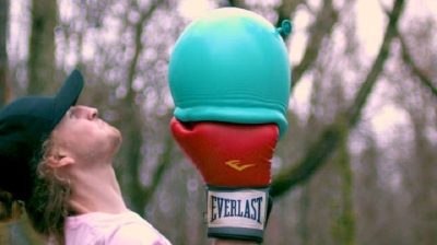 把拳擊手套打一個裝滿水的氣球. 這個場景是在慢動作使用相機幻影VEO 640S拍攝.