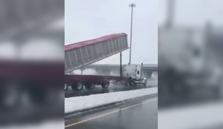 昨天剛剛在中午前, 一輛運載玉米的自卸卡車在加拿大雷彭蒂尼的 40 號高速公路上行駛。, 當提出桶猛烈撞擊橋樑. 幸運的是, 事故是不是致命的.