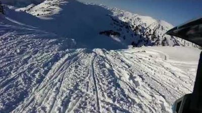 這傢伙到達山頂,享受迷人的景觀包圍著他. 然而, 當他的好友到達山頂, 他立刻慌了後,他們失去了他們的雪地摩托的控制.