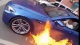 警官正在看的談話與司機,但他似乎無力阻止哄搶狂潮回事他身後.