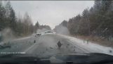 在路過一輛由一名乘客拍攝的視頻顯示,數百人在現場, 許多站在砍伐貨車的側.