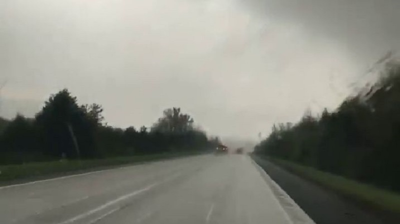 上週五,2018年4月13, 近Mountainbanks阿肯色州路, 一對夫婦買了新車隊後回國, 當他們在龍捲風前發現. 龍捲風掀翻轎車和房車拖著路邊. 該車結束倒掛和大篷車被摧毀. 幸運的是, 兩名乘客都沒有受傷.