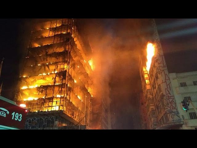 在聖保羅市中心廢棄的建築重大火災坍塌後. 建設, 消防員估計在 10 到 20 層之間, 通過未知數量的無家可歸居住.