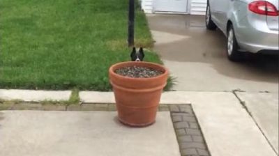 停電後,, 一個女人感動的門廊一些大麻植物約二十分鐘. 當他回來的時候...