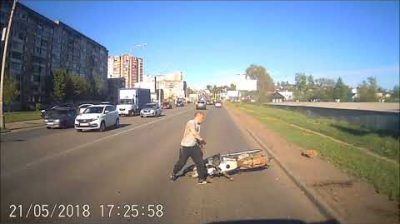 電單車去越野,墜毀. 他試圖跳過交通.