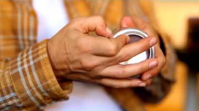一個優秀的男人,有嚴重的殘疾創建使用一台打字機令人難以置信的藝術作品.