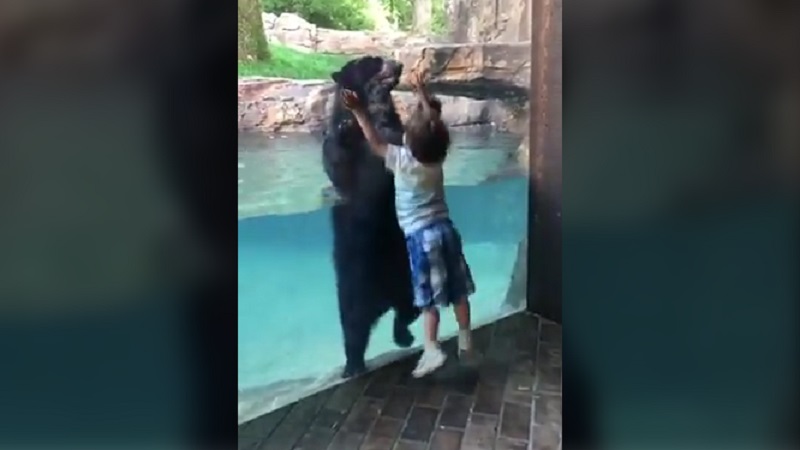 如果動物園, 當他看到一個小男孩熊嬉戲做同樣的.