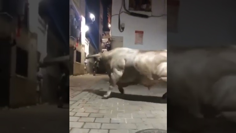 在 Cheste,西班牙節日期間, 一頭公牛發佈走上街頭. 一段時間,