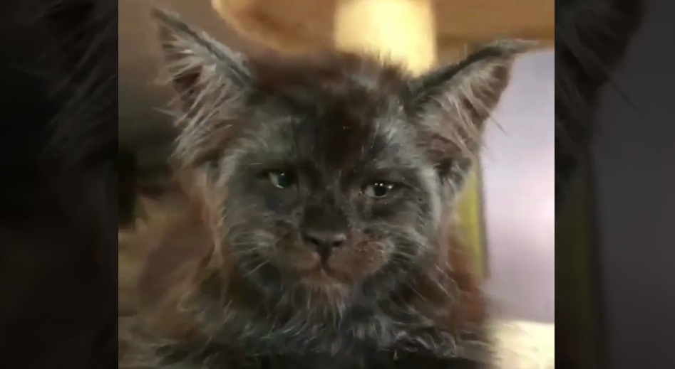 一個女人試著在手機上使用的應用程式, 據說它可以將人類語言翻譯成喵喵聲....