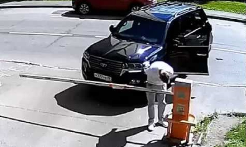 俄羅斯一輛貨車司機試圖通過設有入口欄桿的大門, 誰的小費...