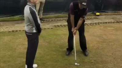 專業高爾夫球, 米克爾森, 它使一個很好的技術拍攝,讓球越過一個男人的頭.
