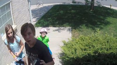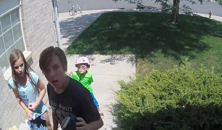 在城市奧羅拉,科羅拉多州2018年7月18日, 在13歲的海莉, 裡根6chronos兄弟和他們的朋友阿什利確實自行車在一起的時候,他們發現在街上錢包附近的車. 當錢包查看數據, 他們決定將其返回到它的主人. 這三個孩子回到家裡,打鈴. 沒有人在那裡, 但安全攝像機記錄了他們的好事.