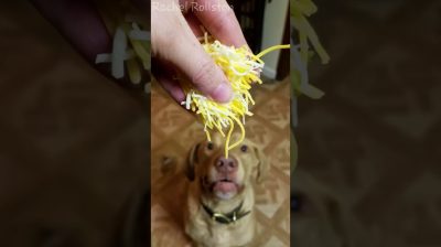狗吃了一個非常有趣的方式將磨碎的奶酪從上面的房東的投.