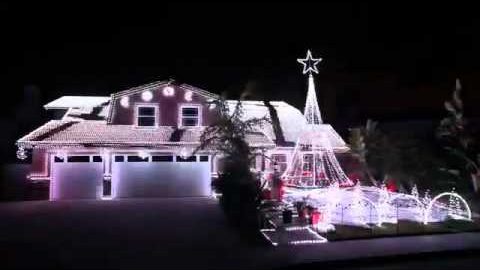 耶誕節的裝飾轉到另一個層次,在這個城市的看法,加利福尼亞州的一個鄰域. 16間房屋加入裝潢...