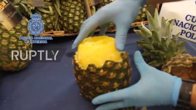 馬德里, 2018 年 8 月 27 日星期一——西班牙警方在馬德里主要水果和蔬菜市場的菠蘿中發現了 67 公斤可卡因. 菠蘿都來自哥斯達黎加. 可卡因封閉在各個軋輥和塗有一層石蠟進入菠蘿水果. 每個菠蘿重 800 克. 和 1 公斤. 該公司負責轉移一直在監視了一段時間由西班牙警方. 七人, 三個馬德里,四個在巴塞羅那, 抓獲毒品恩波里亞的費用.