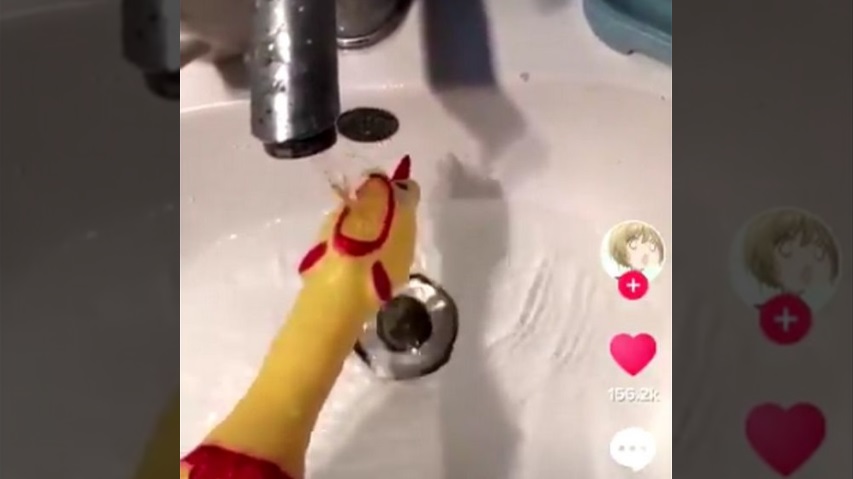 橡膠雞窒息, 留下恐怖的哭聲水龍頭的水底下.