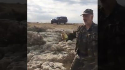 俄羅斯, 一名男子試圖從懸崖上扔啤酒的空罐. 但山谷的熱空氣返回像迴旋鏢箱. 看來大自然已經不能容忍我們的垃圾了…