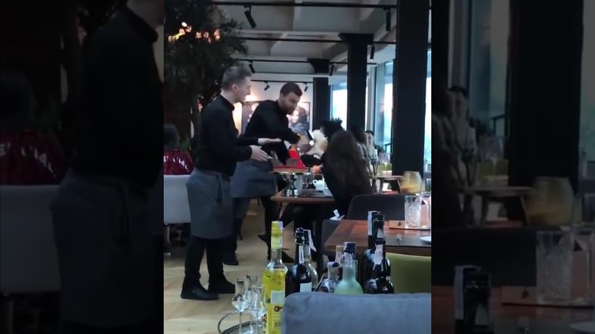 在基輔的豪華餐廳“Guramma Italiana”, 兩個客戶端大喊大叫,侮辱帶了兩個服務員. 一個服務員會拋出一個蛋糕在女人的臉上, 第二個會跟隨女友. 事發後, 服務員退休和客戶要求用頭說話.