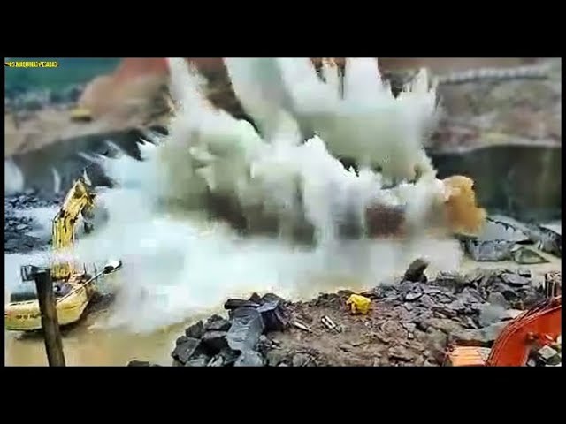在巴西的一個採石場, 挖掘機試圖分離一個巨大的石頭一塊. 這件作品將與它的所有的重量落在水, 引發大“爆炸”.