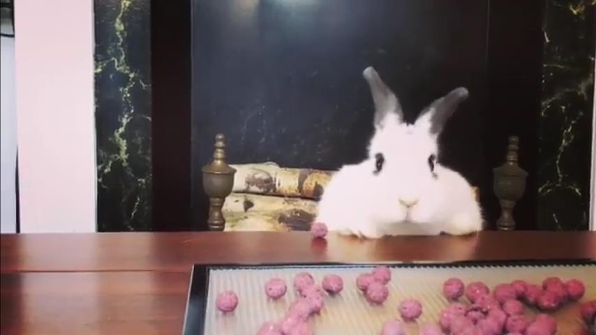 該利拉兔子太激動了,當他看到在廚房的桌子幾對待.