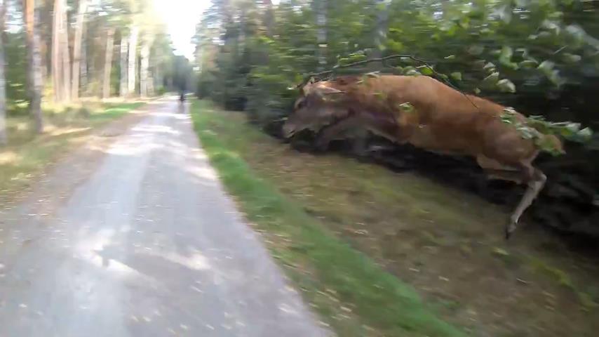 鹿突然出現在一個騎自行車的前
