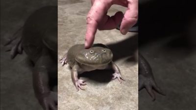 一隻青蛙開始大叫跑開時,有人簡單地觸摸他的背部.