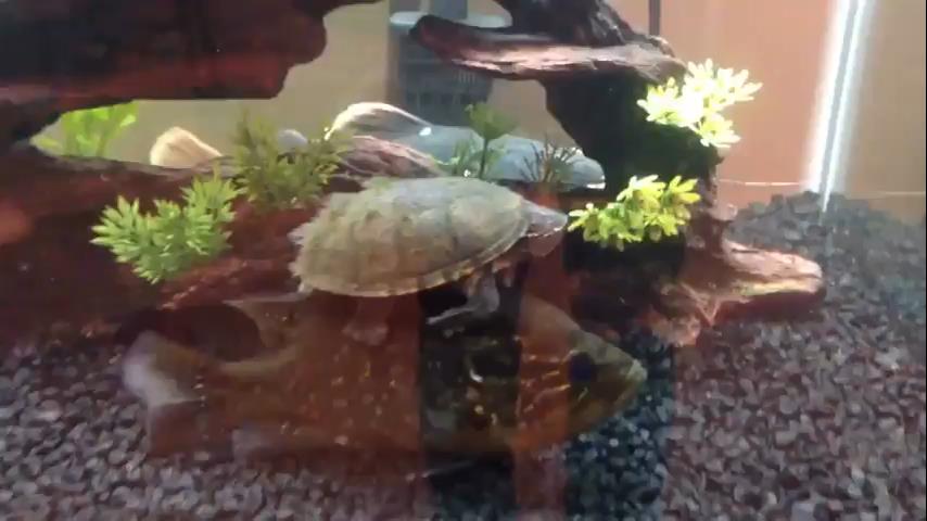 在水族箱中的傳輸介質上的海龜遊.