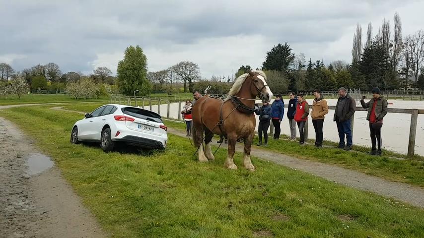 一個偉大的工作,馬管理相對容易拉車陷在溝裡, 城市蘭巴拉法國.