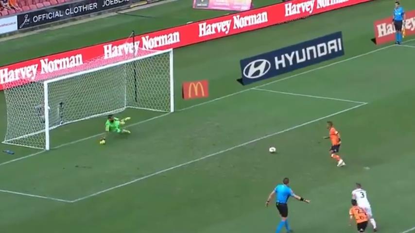 在埃里克·包亞克執行在阿德萊德聯隊和布里斯班獅吼澳大利亞之間的匹配非常狡猾處罰. 也許守門員管理快一點招架如果移動.