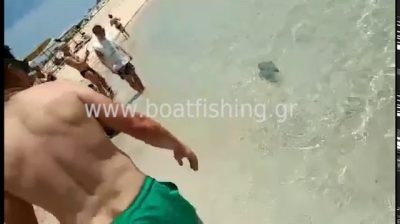 攻擊誰在淺水遊一lagokefalou卡爾帕索斯接受游泳運動員之一Diakoftis海灘, 誰去與危險魚玩.
