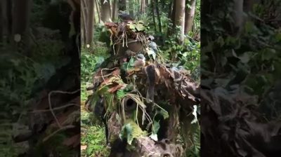 在期間英國蘇塞克斯的氣槍遊戲, 兩隻鳥舒服地坐在小心迷彩服玩家.
