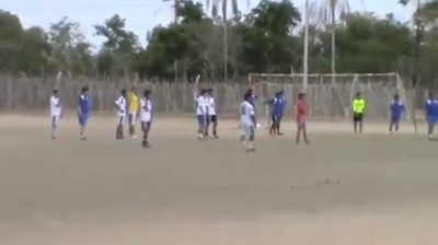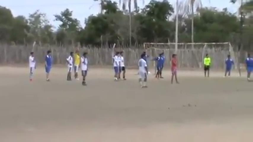 在巴西的業餘足球比賽, 守門員已經在框中運行一角被壓. 然後,他利用一台機器快速返回到年底.