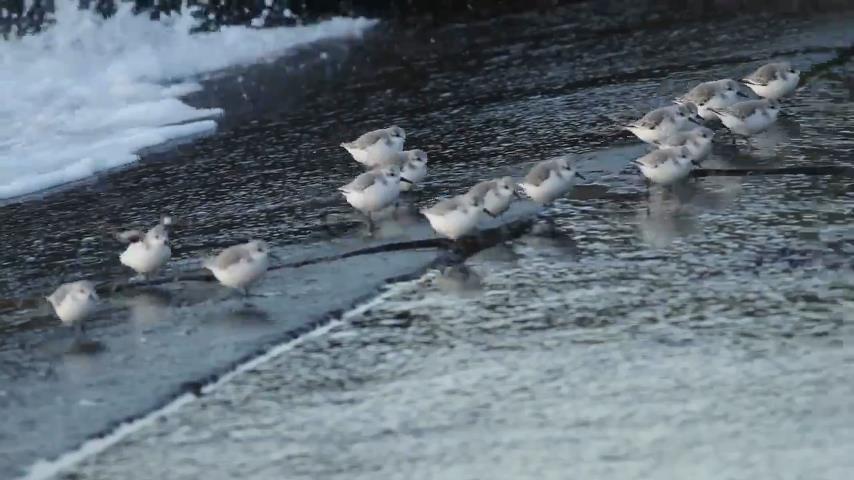在日本海灘, 運行浪推前浪的lefkoskalidres. 這些以這種方式小鳥不玩了, 但飼料. 一旦波消退, 在lefkoskalidres運行,並盡量吃小型無脊椎動物 (蠕蟲, 甲殼類動物和各種昆蟲) 離開浪潮背後.