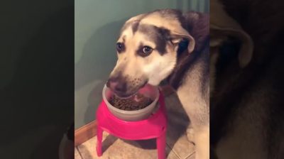 在所有者錄製的視頻狗一邊吃, 當他拿著手機走近時,給他留下了一份“禮物”.