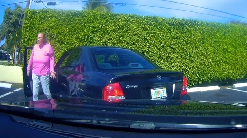 2019年1月16日在美國佛羅里達州, 一個女人跟另一個司機造成的事故,並試圖逃離現場. 但受害人將採取幾公里, 試圖阻止以任何方式.