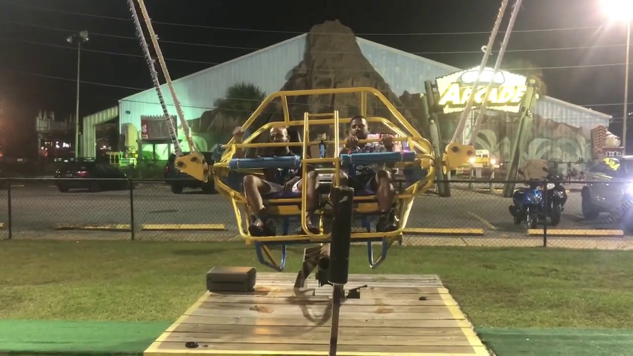 開始之前在吊索一經推出,在巴拿馬城海灘,佛羅里達州兩名乘客, 兩個巨大的橡膠錶帶斷裂的一個. 幸運的是, 沒有人受傷.