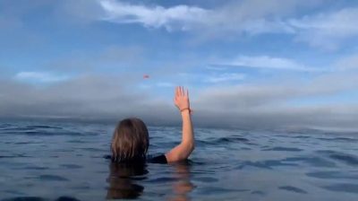 他自己的電影,他的飛機後,直升機救援在水中墜毀