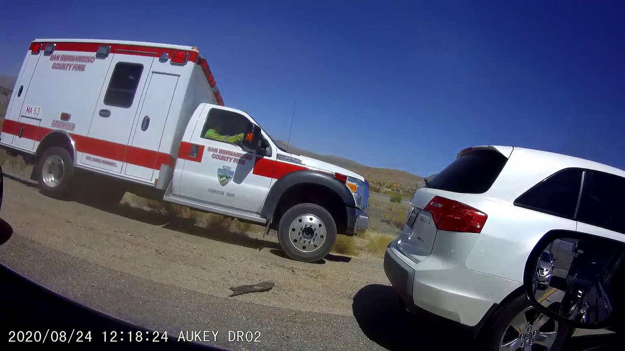 在加州公路I15, 是兩輛卡車之間的事故. 創造了車禍隊列後, 與駕駛者使用的應急車道造成救護車遷出的方式. 憤怒的救護車司機透過擴音器說“這就是為什麼你必須留在他媽的路上”.