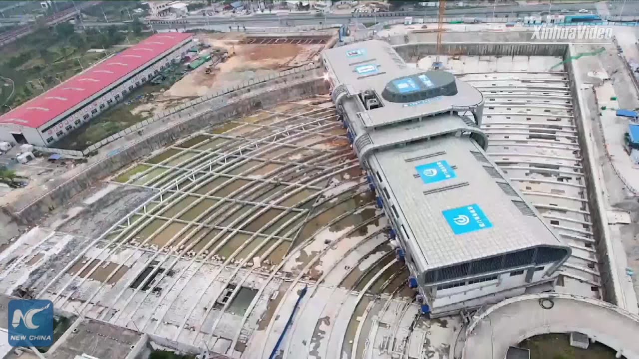 一家建築公司在廈門的中國城市管理移動一個公共汽車站30.000 從原來的位置噸90度. 此舉是為了開闢空間大快速火車站.