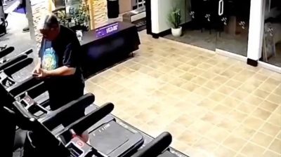 在加州的一家健身房, 奔馳SUV突然穿過玻璃前一個健身房,打一個人,誰是準備在跑步機上跑.