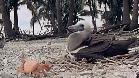 螃蟹攻擊和受傷的 mpoyfoys 島的中美洲 Kliperton galazopodaroys. 在這場偉大的戰役後, 需要截肢獨自傷的肢. 摘自系列 《 雅克庫斯托奧德賽»